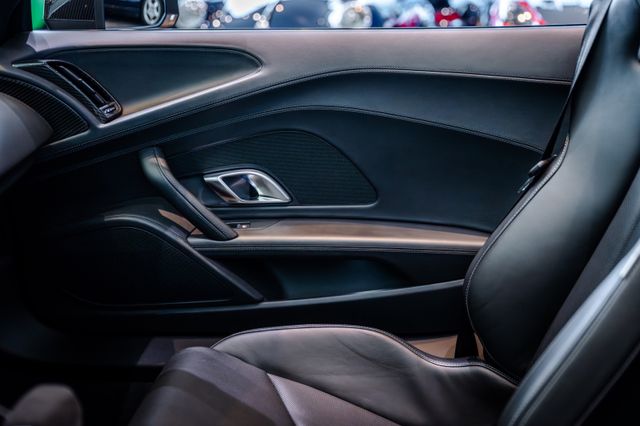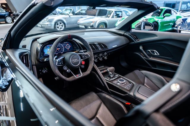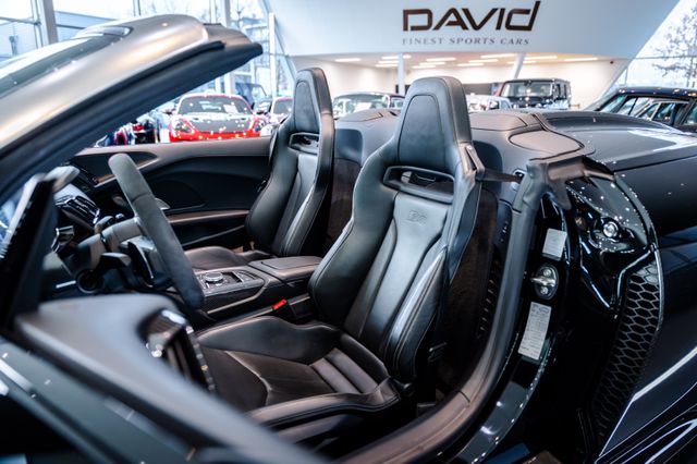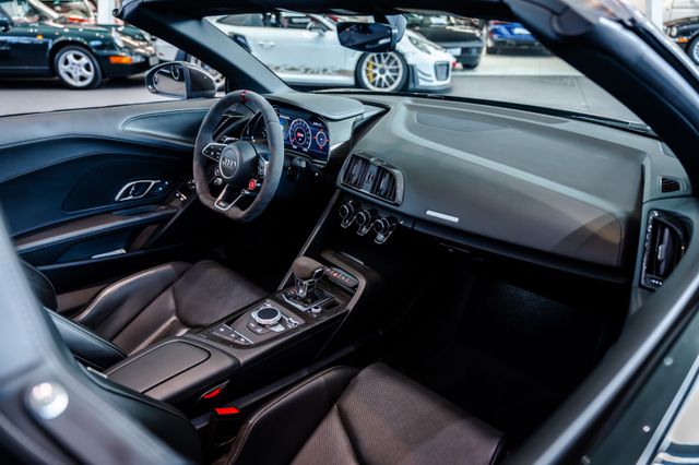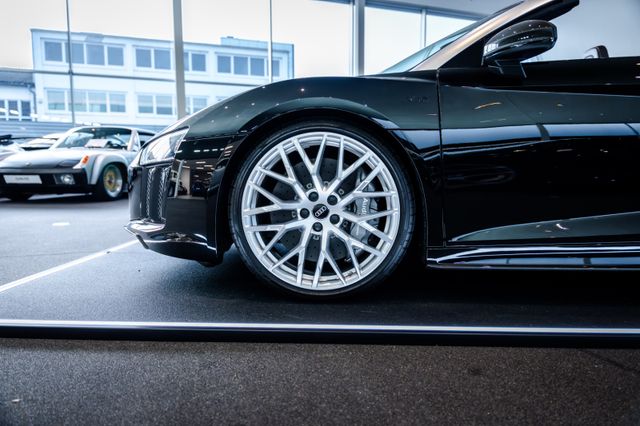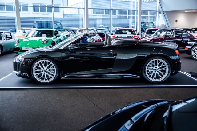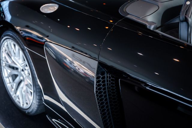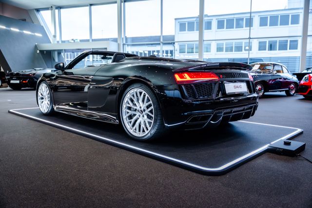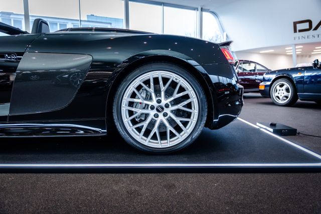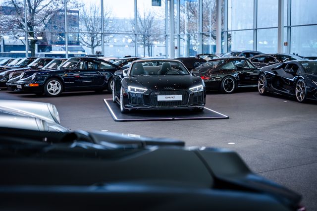 Sehr gepflegter und umfangreich ausgestatteter Audi R8 V10 plus Spyder in klassischem Schwarz/ Schwarz.