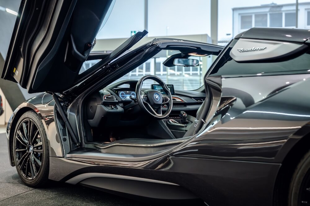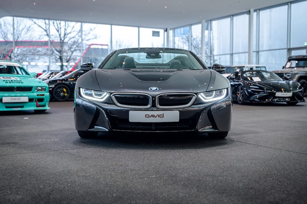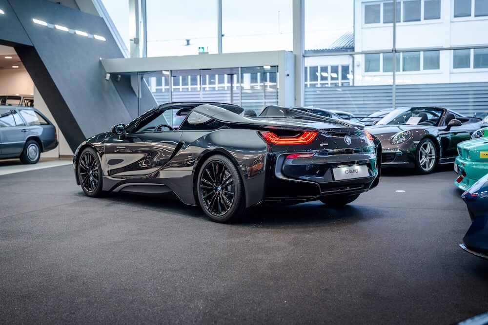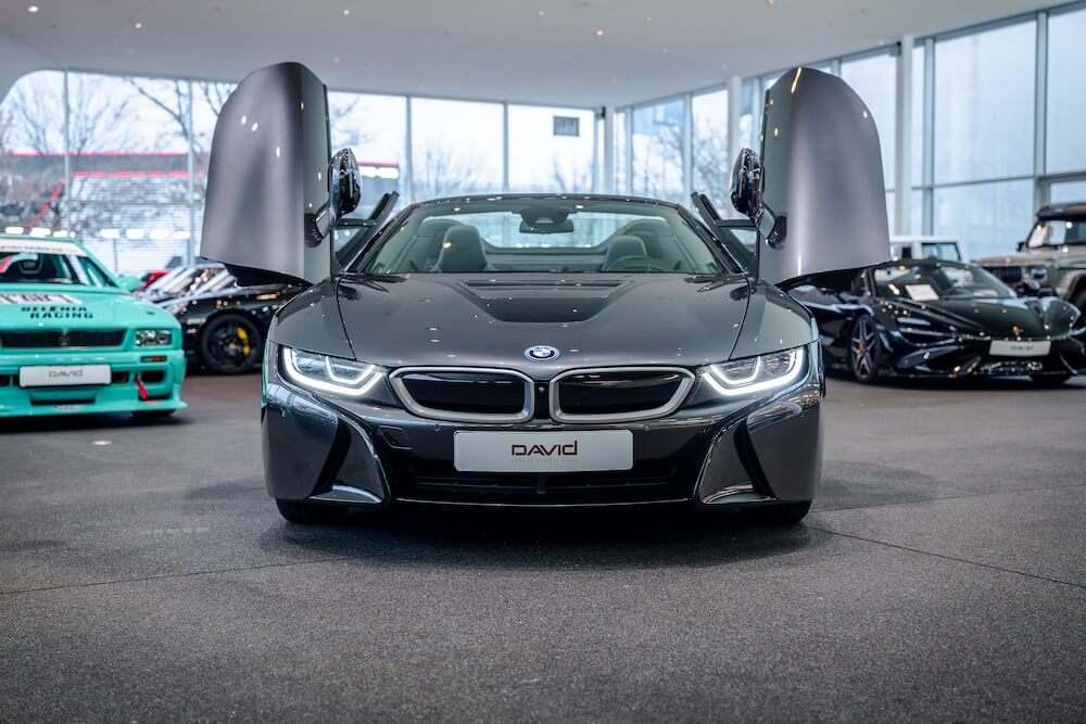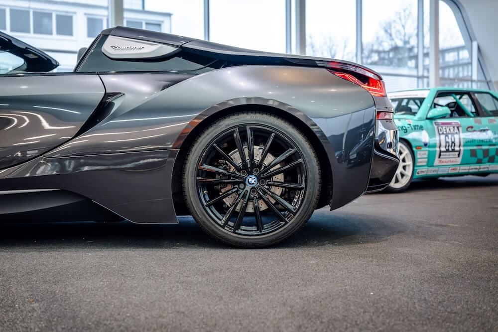 Sehr gepflegter BMW i8 Roadster mit umfangreicher Ausstattung in der Farbe Sophisto Grey Brilliant Effect.