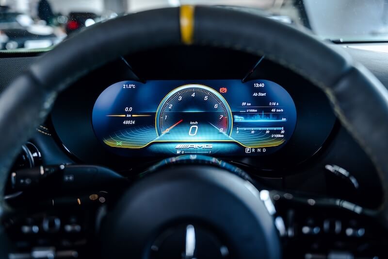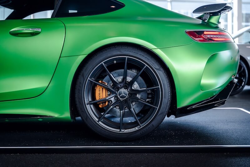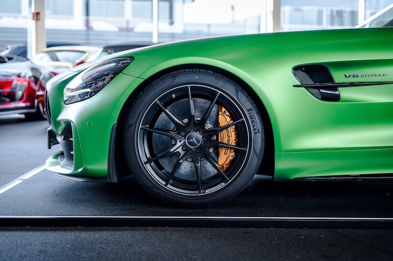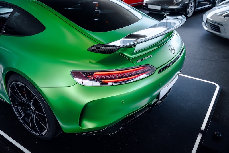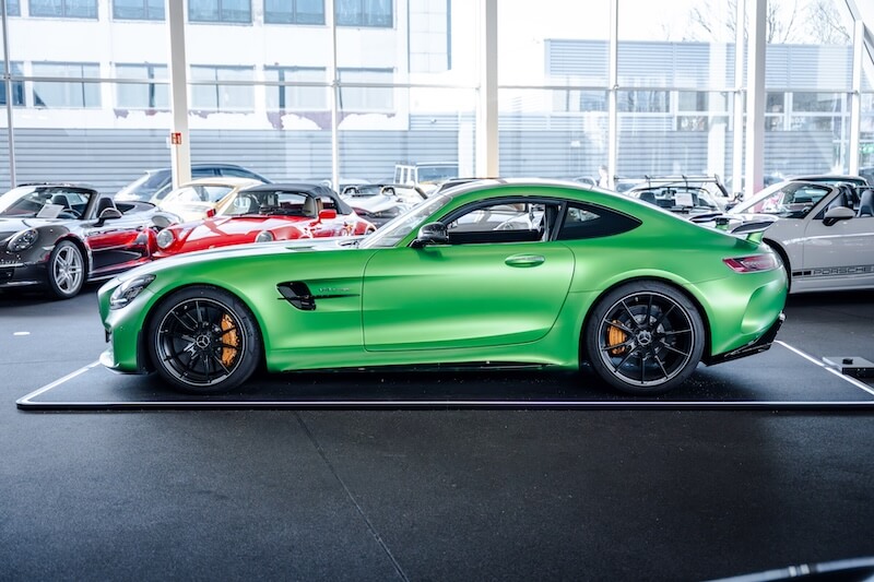 AMG Track Pace (APP), Audio-Navigationssystem: COMAND Online, Bürofunktion im Fahrzeug, Exterieur-Paket 2 Carbon (AMG), Fahrassistenz-System: Verkehrs-Informations-System Live Traffic, Fahrzeug Setup (Onlinedienste / Apps), Gepäckraumabdeckung / Rollo, Innenhimmel designo schwarz, Keramik-Bremsanlage (AMG), LM-Felgen vorn/hinten: 10x19 / 12x20 (AMG, 10-Speichen, geschmiedet, mattschwarz, Rand glanzgedreht), Memory-Paket, Park-Paket, Seitenscheiben hinten und Heckscheibe abgedunkelt, Sicherheitsgurte farbig, Sitzbezug / Polsterung: Leder Exklusiv Nappa Dinamica mit Kontrastnaht in Gelb, Sitzheizung vorn, Smartphone integriert, Sonderlackierung AMG (Green-Hell magno), Spiegel-Paket, Sportsitze AMG Performance, Vorrüstung Navigationsdienste
