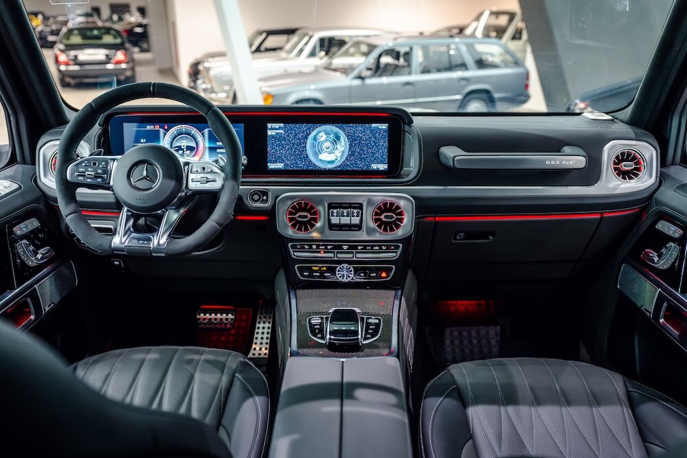Umfangreich ausgestatteter Mercedes-Benz G 63 AMG 4×4 mit Brabusoptimierungen und Steinschlagschutzfolierung.