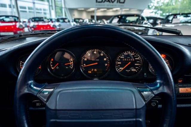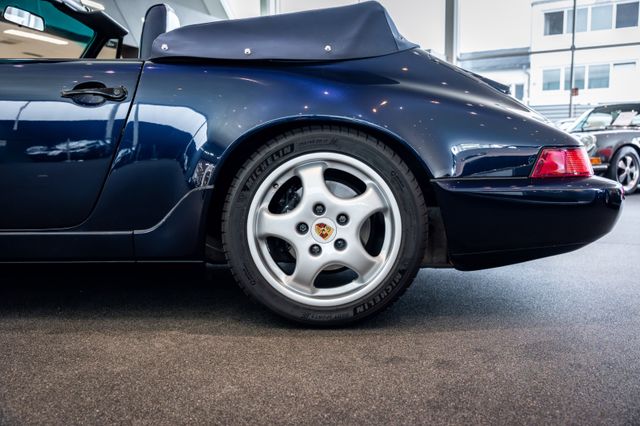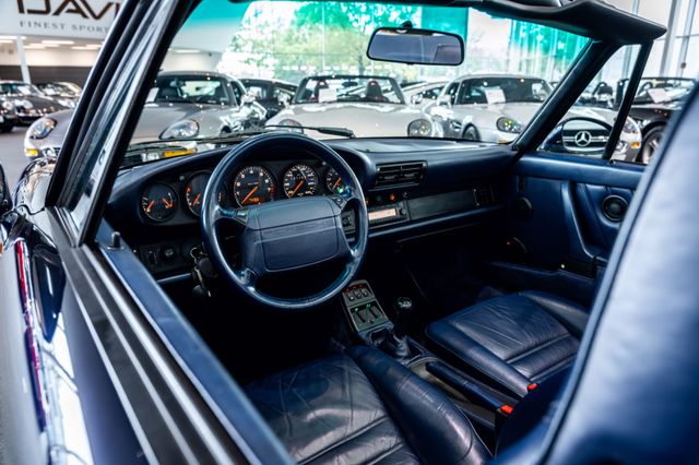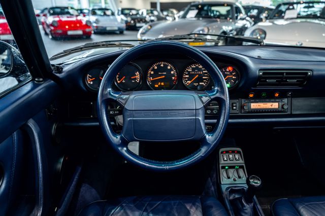 Wunderschönes Porsche 964 C4 Cabriolet in dreifach blau, mit viel Historie, revidiertem Motor und exzellentem Zustand.