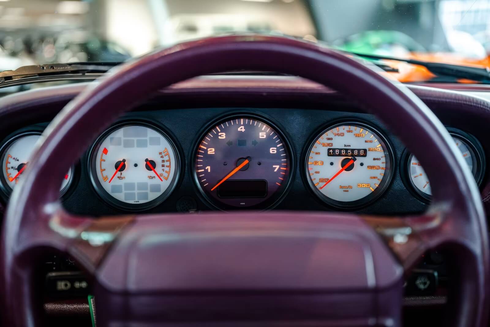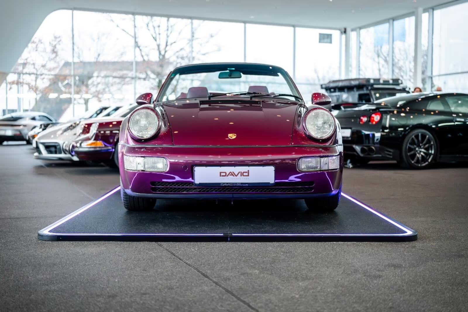 Sehr gepflegtes Porsche 964 Cabrio mit dem seltenen und beliebten Werks-Turbo-Look (WTL) in der besonderen Farbkombination Amethyst (L38A) Außen und Magentarot (TQ) Innen.